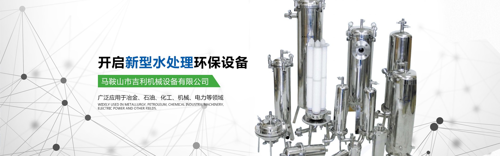馬鞍山市吉利機(jī)械設(shè)備有限公司位于江南名城一馬鞍山市,交通十分便利。公司具有獨(dú)立法人資格,是集水處理設(shè)備的研發(fā)、設(shè)計(jì)、生產(chǎn)、銷(xiāo)售為一體的專(zhuān)業(yè)型企業(yè)。公司的主要產(chǎn)品有高中速過(guò)濾器、纖維球過(guò)濾器、新型除油過(guò)濾器、無(wú)閥過(guò)濾器、加藥裝置、管道全自動(dòng)過(guò)濾器、淺層砂過(guò)濾器、攪拌機(jī)、沙水分離器、管道靜態(tài)混合器、化水設(shè)備、反滲透等膜處理設(shè)備、空氣過(guò)濾器等。公司所研發(fā)的產(chǎn)品有占地少、處理效果好、投資省、操作管理方便的優(yōu)點(diǎn),受到客戶的一致好評(píng)。
